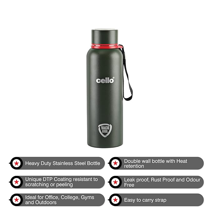 VACUSTEEL TECHNOLOGY: Vacusteel Technology is this unique collaboration of steel and vacuum for superior insulation, which allows the beverage to remain hot or cold for prolonged hours. The bottle boasts an elegant silver color, adding a touch of sophistication and style to your daily hydration routine.