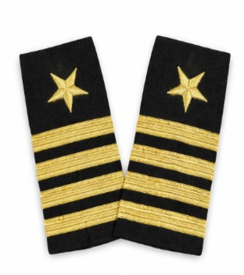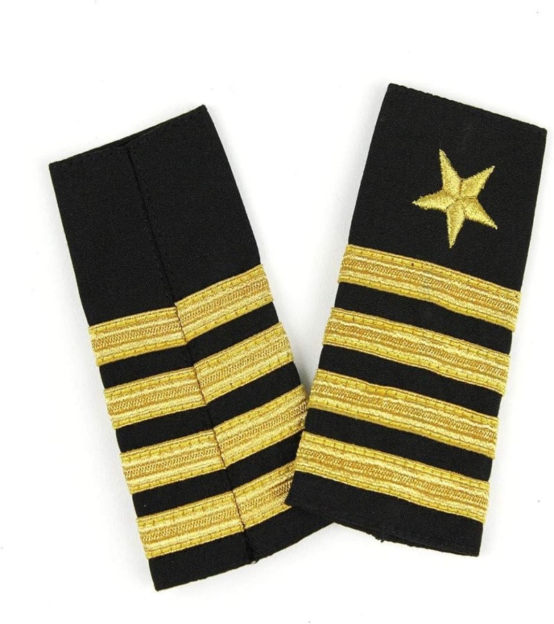 - Black fabric with gold-colored trim and bullion wire star embroidery