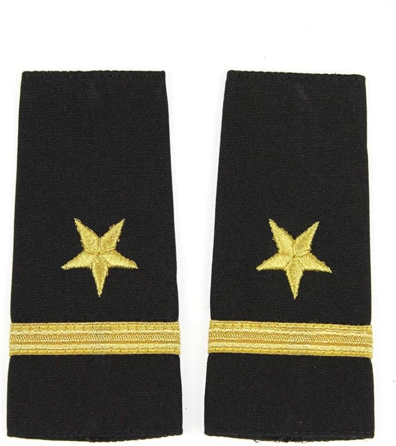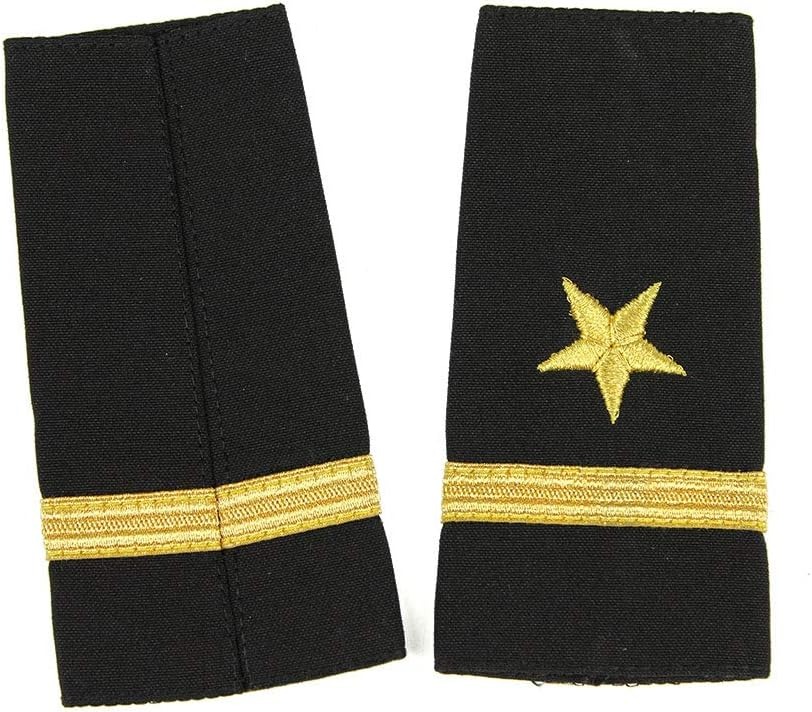 - Black fabric with gold-colored trim and bullion wire star embroidery
