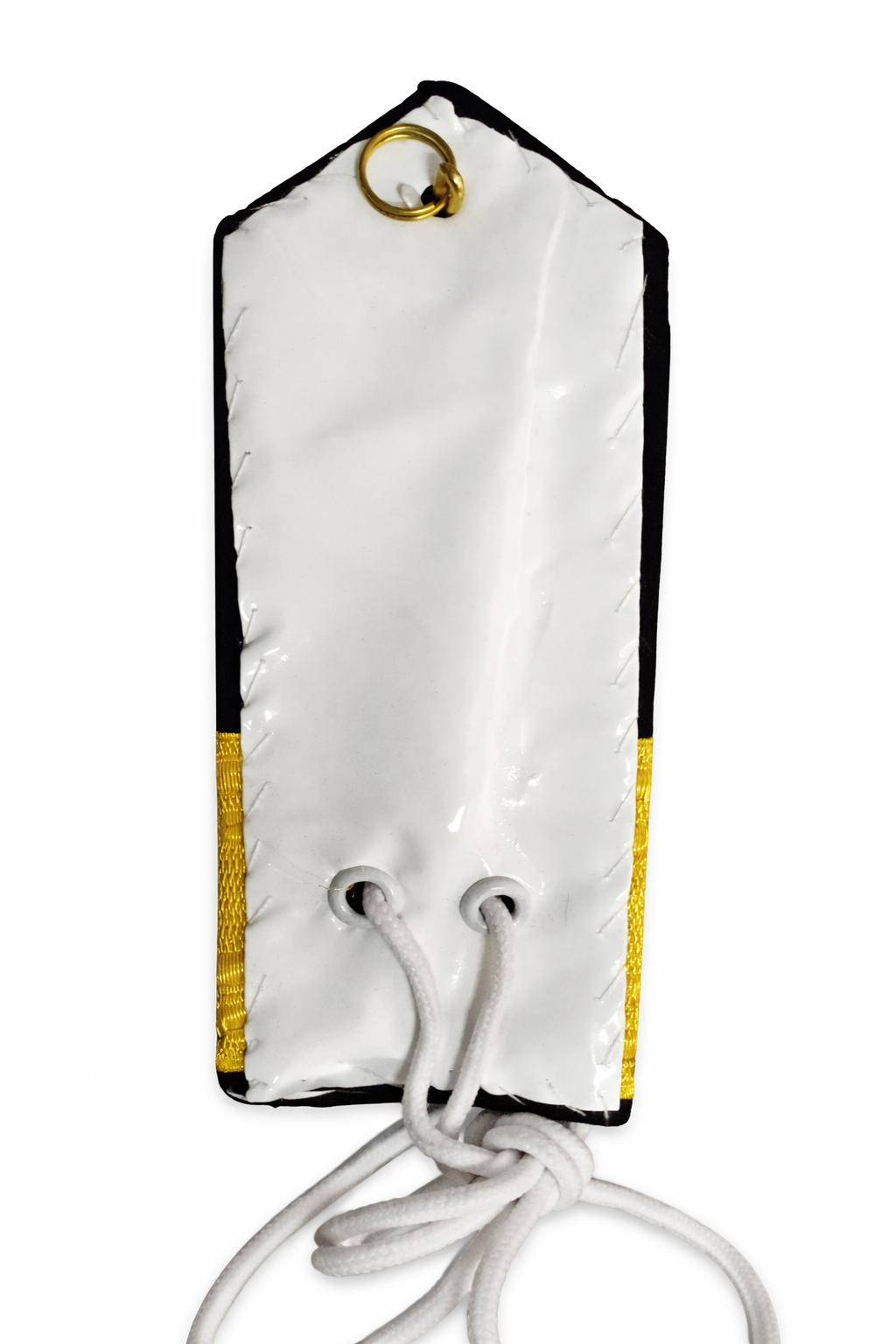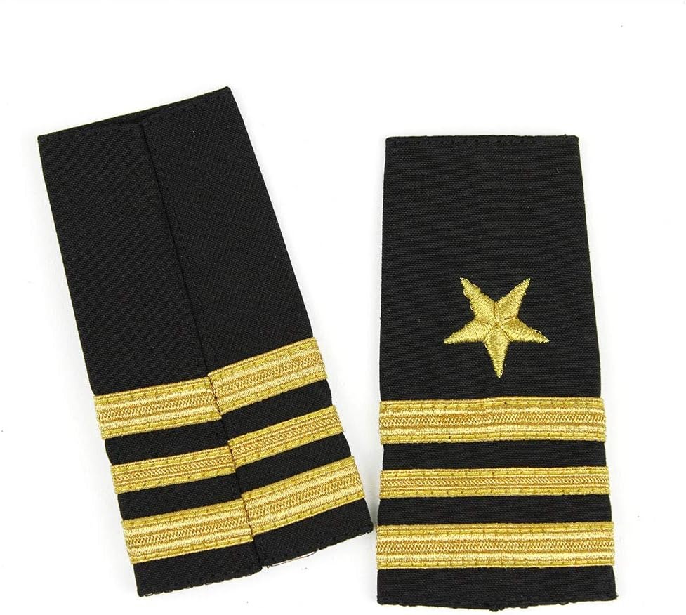 - Black fabric with gold-colored trim and bullion wire star embroidery