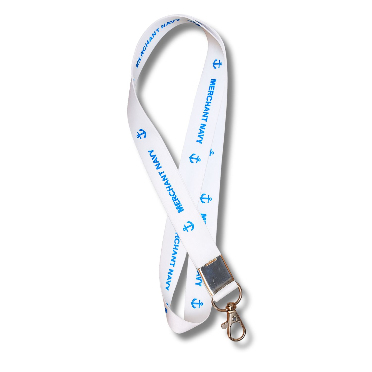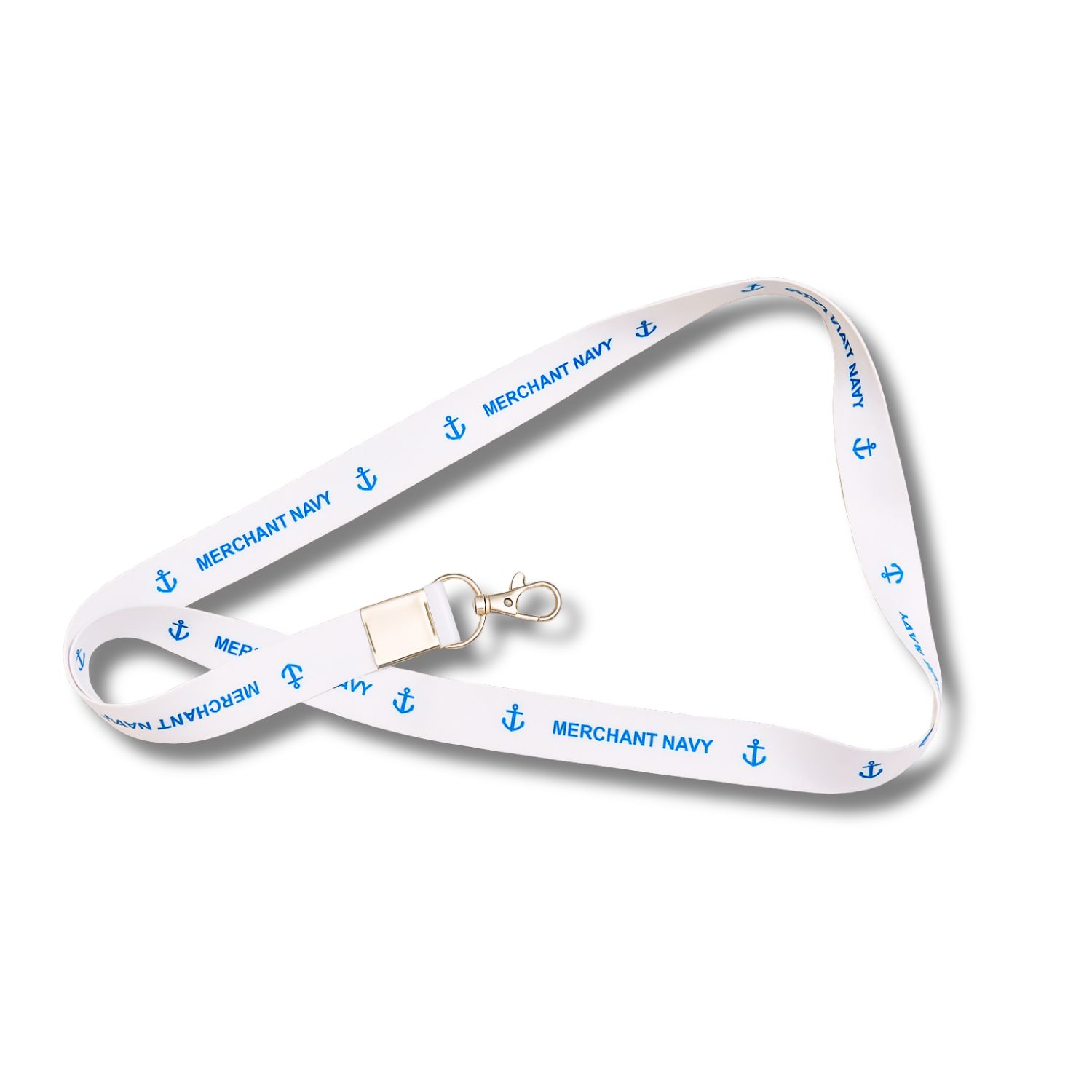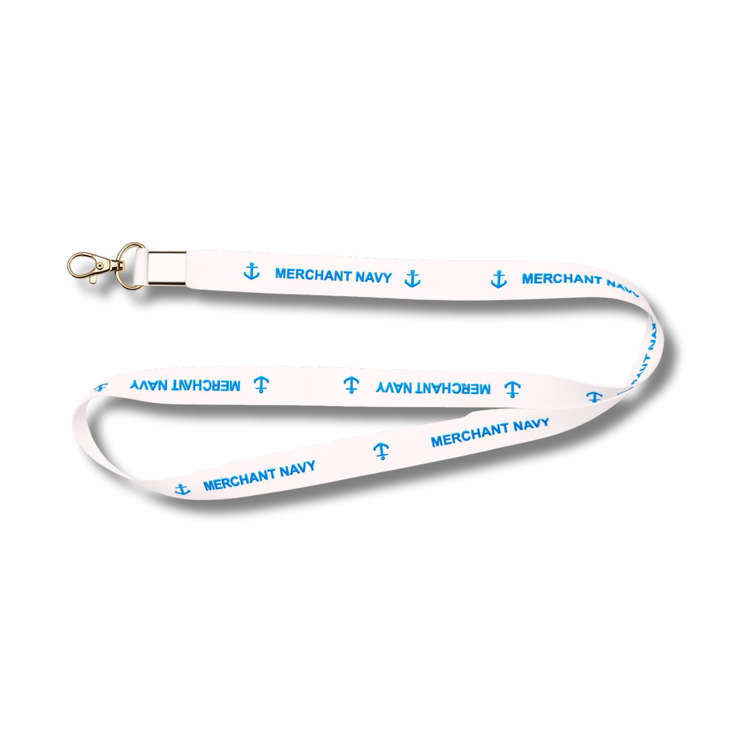 - White color Lanyard with Text : Merchant Navy in Blue Color