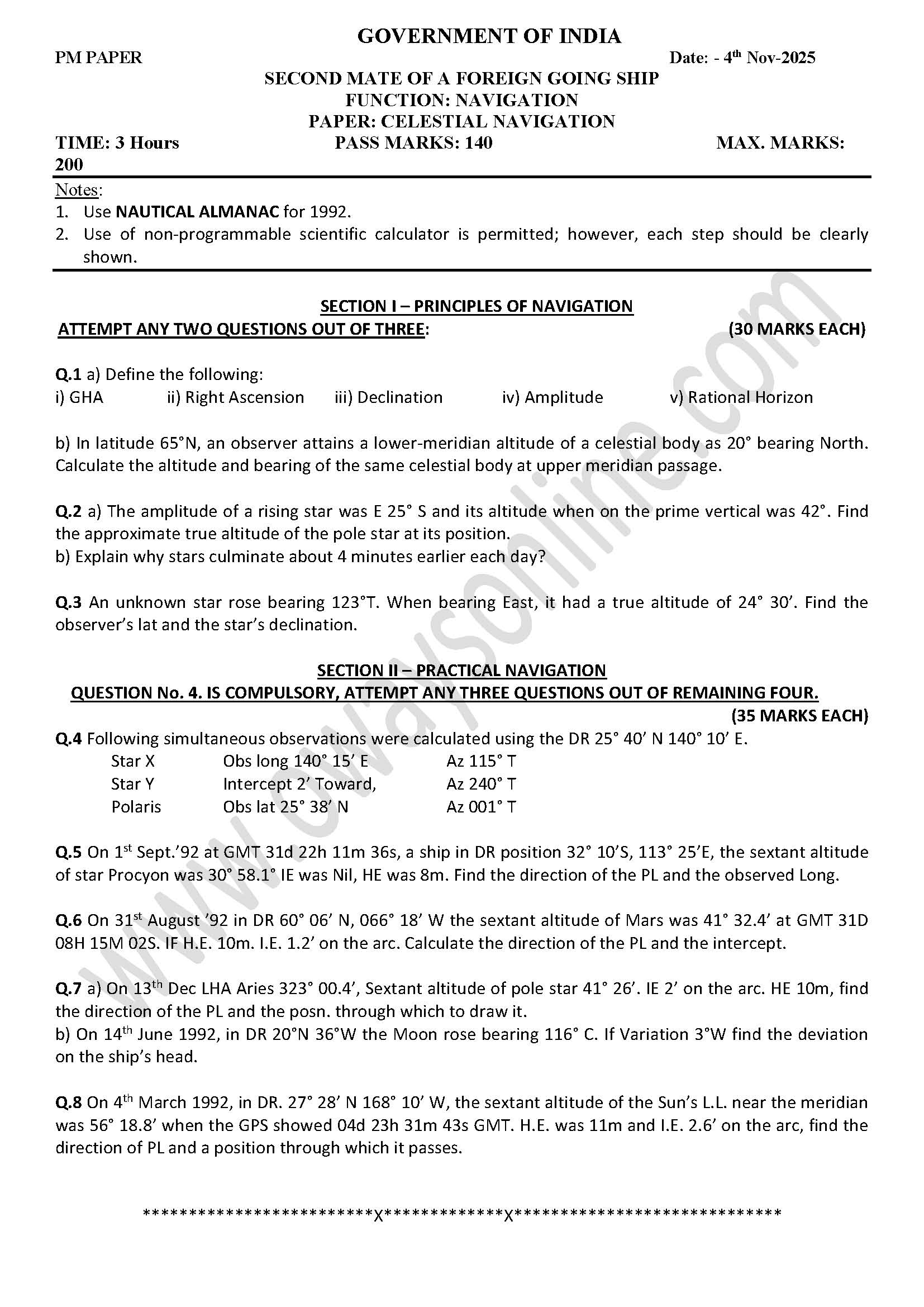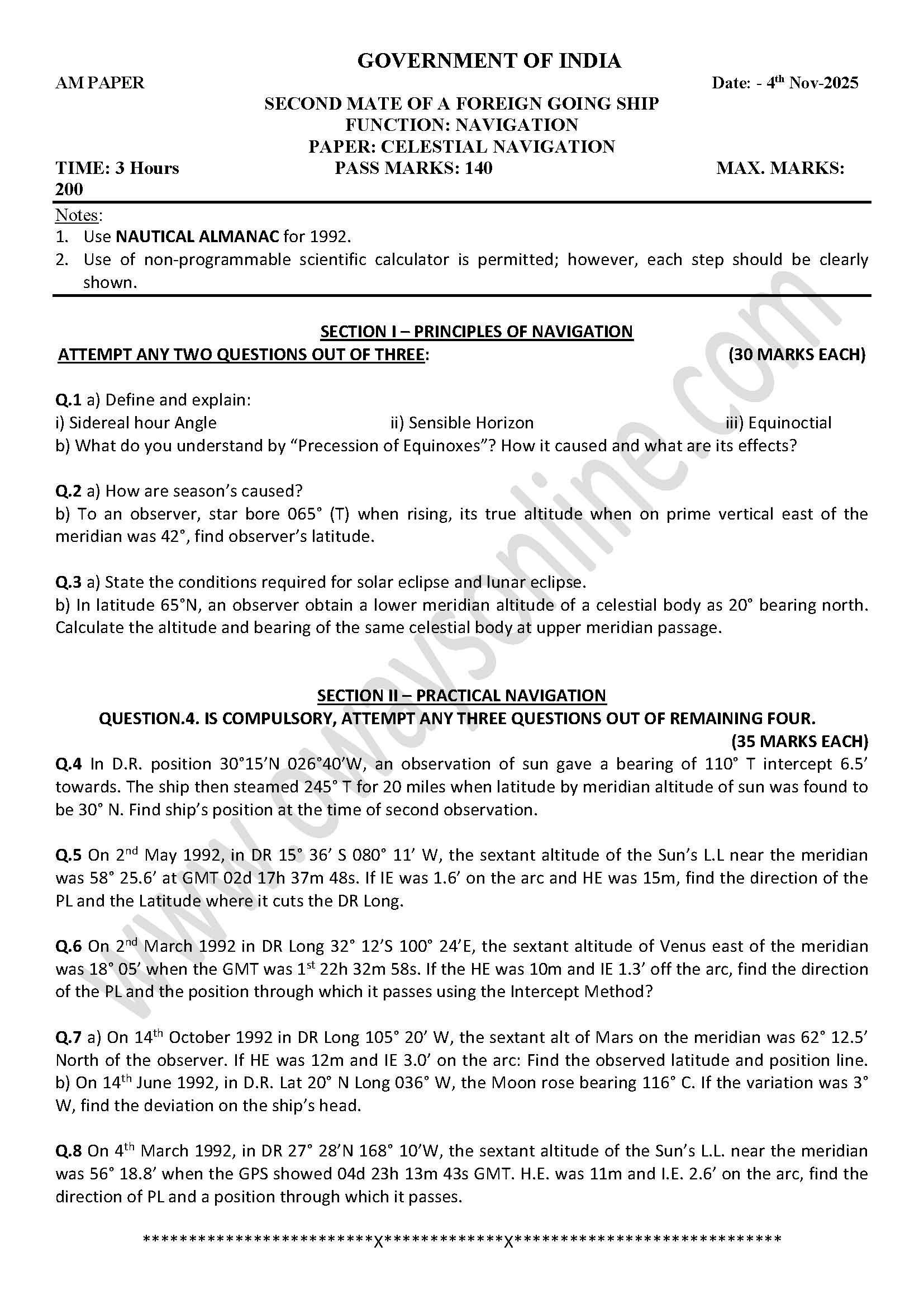 Past Year Question Papers Untill JAN 2026 Second Mate Notes